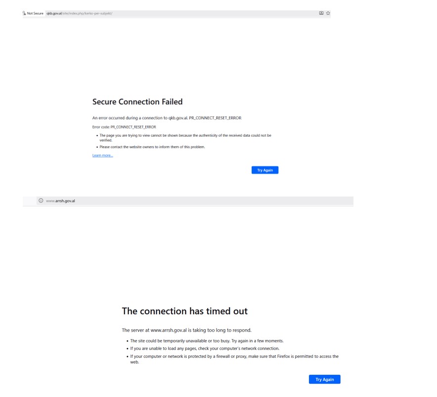 Shumë faqe qeveritare sot, me “domain” për institucionet qeveritare (.gov.al) nuk po arrijnë të hapen.