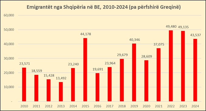 Vetëm pas pandemisë, në 4 vjet, për periudhën 2021-2024, nga vendi kanë ikur të paktën 180 mijë persona dhe këtu nuk përfshihen të dhënat e Greqisë dhe as Mbretërisë së Bashkuar, me këtë të fundit që pa një valë ikjesh që kulmoi në 2022-n.