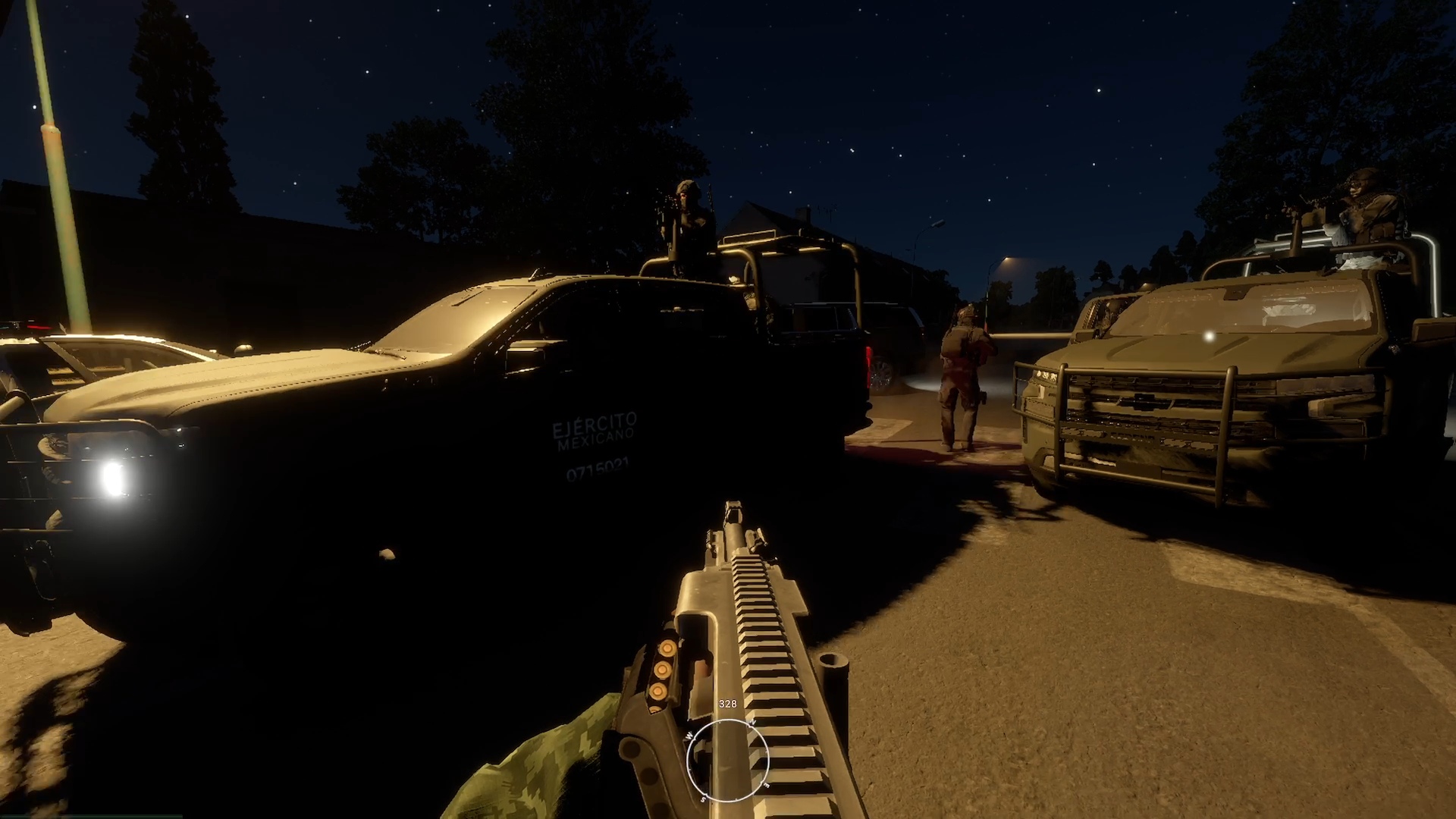 Pas tyre lëvizin SUV të blinduara, ndërsa automjetet mbajnë shenja të ndryshme kartelesh, si ato të Cartel del Noreste apo të grupeve të lidhura me Gulf Cartel. Në të njëjtën kohë, fraksioni i ushtrisë përdor automjete të modeluara sipas forcave të armatosura meksikane, por shumë lojtarë preferojnë anën e kartelit sepse komunikimi me zë mbushet me zhargon narko dhe me koordinim që imiton organizatat reale.