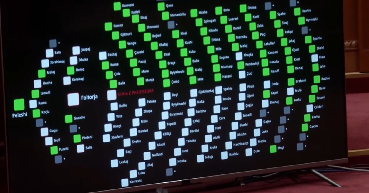Partia Demokratike mungoi në seancë, duke argumentuar se projektrezoluta nuk ishte përfshirë në rendin zyrtar të ditës. Në sallë ishin vetëm Redi Muçi dhe Erald Kapri; Kapri votoi së bashku me PS, ndërsa Muçi abstenoi.