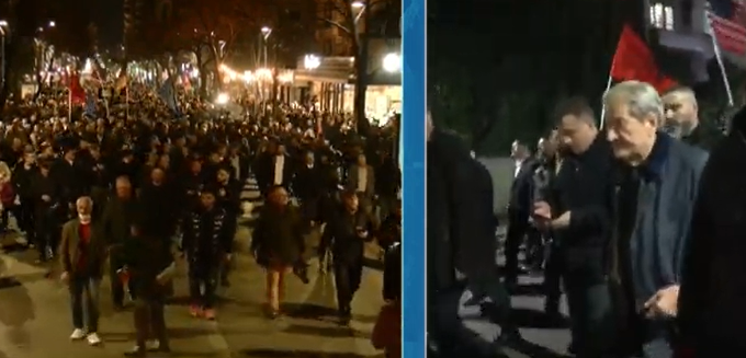 Më pas, turma është zhvendosur drejt zonës së ish-Bllokut, e ndjekur nga forca policore dhe autobotë me ujë. Gjatë marshimit, protestuesit mbanin flakadanë dhe kanë hedhur një molotov në drejtim të një stacioni urban.