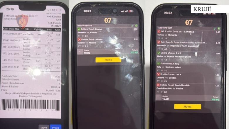 Organizonin veprimtarinë e paligjshme të vënies së basteve sportive, nëpërmjet celularëve, në disa lokale në Krujë, vihen në pranga 2 shtetas dhe procedohet një tjetër shtetas.