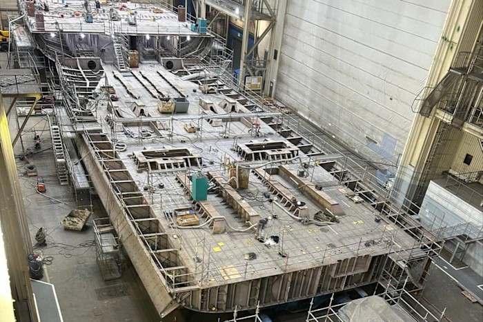 Salla e ndërtimit të anijeve Peene-Werft në Wolgast, Gjermania verilindore. Damen mori një angazhim që pjesa më e madhe e punimeve të ndërtimit do të zhvillohej në kantieret detare gjermane