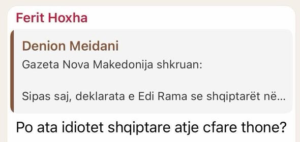 “Po ata idiotët shqiptarë atje çfarë thonë” thuhej në mesazhin e Hoxhës në një grup WhatsApp-i, shpërndarë dje nga Këlliçi.