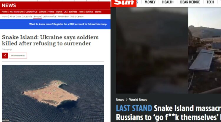 LajmeU tha se ndaj 13 ushtarëve ukrainas u krye masakër në “Ishullin e Gjarpërinjve”, lajmi i medieve perëndimore rezulton rremë02/03/2022