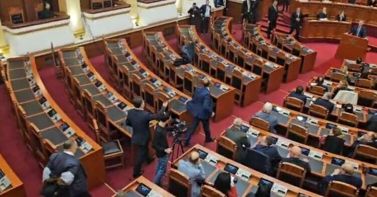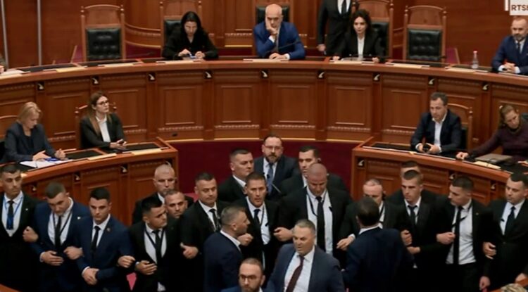 LajmeGarda dhe deputetët e opozitës përplasen te hyrja e Kuvendit, mazhoranca nis seancën plenare05/02/2024