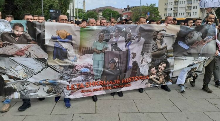 LajmeProtestat pro-Palestinës mbërrijnë në Prishtinë, qytetarët mbushin rrugët me pankarta në duar21/10/2023