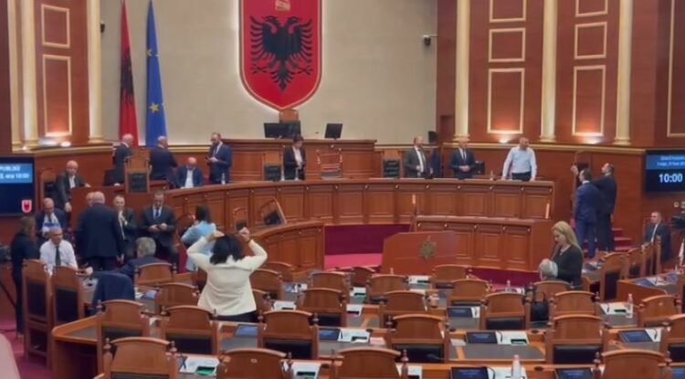 LajmeTensione në nisje të seancës plenare/ Deputetët e opozitës bllokojnë karriget e ministrave në Kuvend 19/10/2023