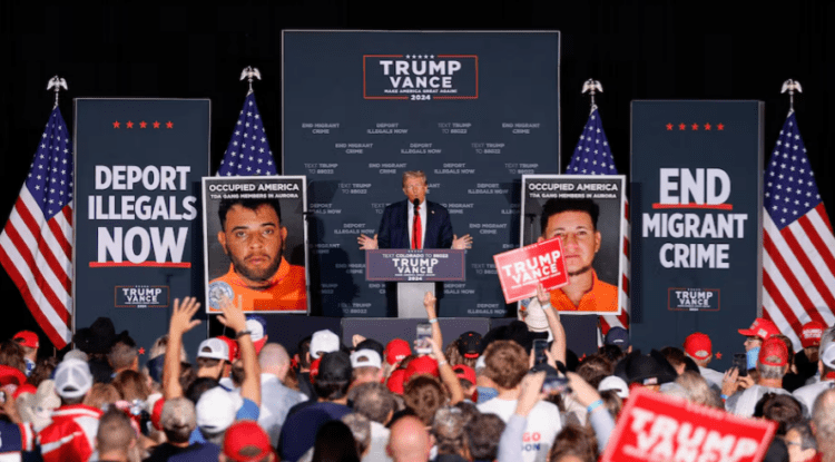 Donald Trump i portretizoi emigrantët si kriminelë të rrezikshëm gjatë një mitingu në Aurora, Kolorado, të premten, duke bërë thirrje për dënim me vdekje për emigrantët që vrasin qytetarët amerikanë ndërsa ai përshkallëzon retorikën kundër emigracionit që ka nxitur kandidimin e tij presidencial. I rrethuar nga postera të anëtarëve të…