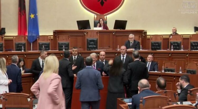Sali Berisha nuk ka lëshuar foltoren, duke kërkuar të flasë për replikë. Garda e Kuvendit e rrethoi foltoren, ndërsa më pas nënkryetarja i dha fjalën për procedurë. Në shenjë proteste, deputetët e PD-së i ranë tavolinave. Kreu i Partisë Demokratike, në fjalën e tij në Kuvend ka deklaruar se Kuvendi…