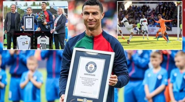 Ylli i futbollit Cristiano Ronaldo u bë lojtari i parë për meshkuj që bëri 200 paraqitje ndërkombëtare. Për këtë arritje, 38-vjeçari u nderua nga Guinness World Records para fillimit të ndeshjes ndaj Islandës për arritjen e 200 ndeshjeve për Portugalinë, pothuajse 20 vjet pasi bëri debutimin e tij. I vetmi…